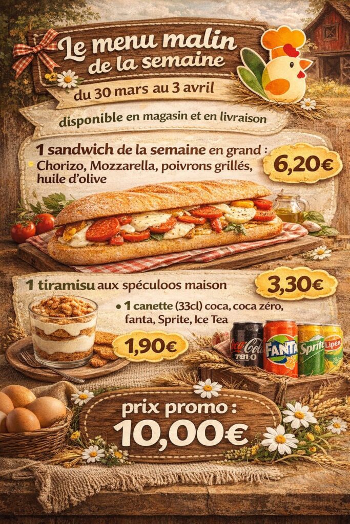 Menu semaine du 30 mars au 3 avril 2026